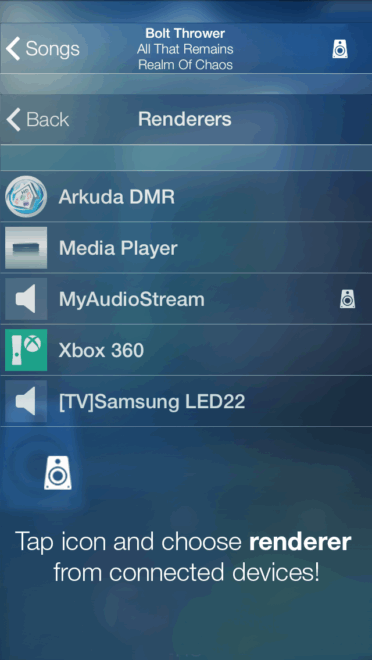 Stream your chosen song to any UPnP/DLNA/Samsung Link enabled renderers, Xbox360/One, PS3/PS4, or HD TV